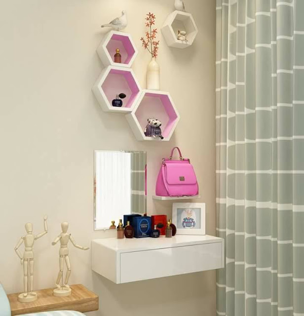 - Tốt nhất nên chọn bàn trang điểm treo tường cho không gian phòng khách chật hẹp.
